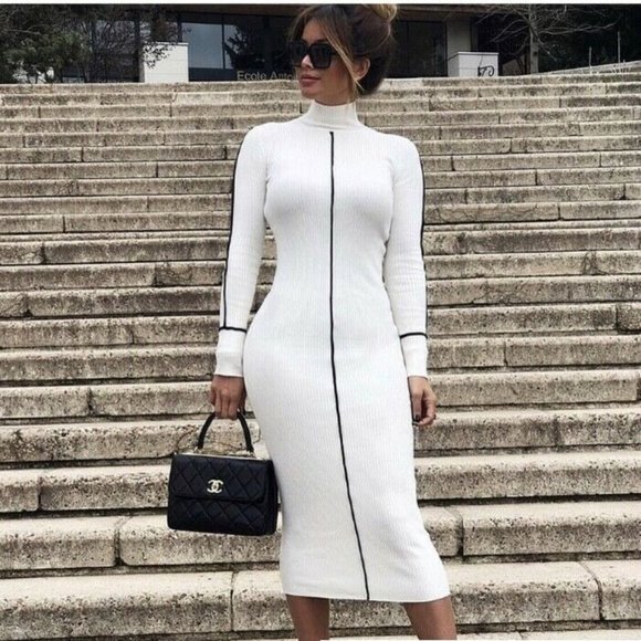 Zara Dresses Zara Sm White Ribbed Long Sleeve Turtleneck Dress Poshmark