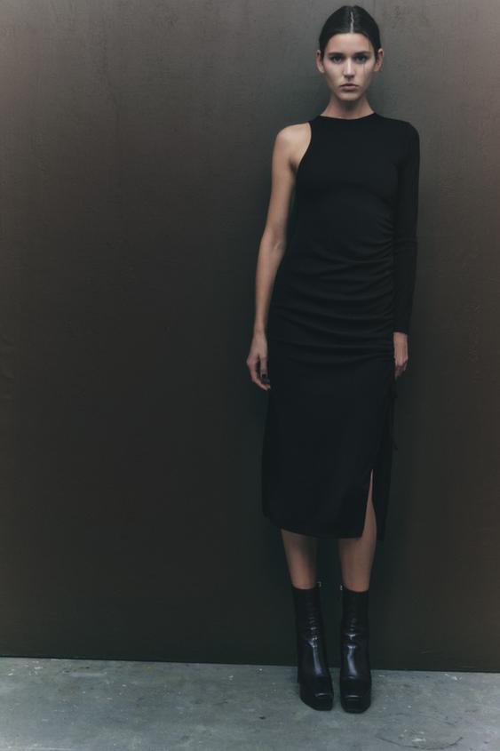 This dress is made from a really great thick black fabric. The black dress gets a makeover in crochet silky-satin ribbed and stretchy cotton denim and leather in this collection to ensure there are tough-talking as well as laid-back styles to choose. Zara black turtleneck dress.